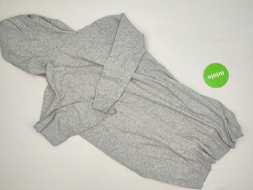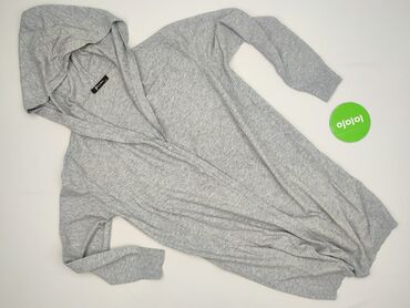 Długi, szary kardigan/bluza z kapturem bez zapięcia. - Fason: luźny, otwarty przód, wydłużony tył z rozcięciami po bokach - Kaptur obszerny - Rękawy długie - Kieszenie po bokach - Dekoracyjne brąz...