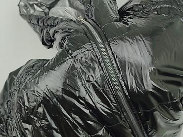 Damska kurtka z kapturem, pikowana, w kolorze czarnym o wysokim, połyskującym wykończeniu.