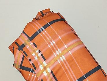 - Kolor i wzór: pomarańcz w kratę z akcentami czerni, różu i złota