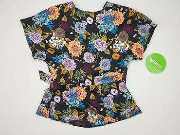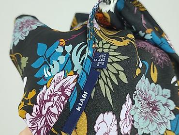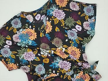 - Wzór: gęsty, wielobarwny motyw kwiatowy na czarnym tle (odcienie fioletu, turkusu, musztardy, zieleni)