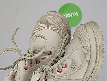- Kolor: kremowy/ecru z różowymi akcentami (oczka sznurowadeł, pętelka z tyłu)