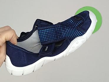 Sandałki chłopięce 5.10.15, rozmiar 21 - Dla niemowlęcia/chłopca - Kolor: granatowy z żółtymi akcentami (naszywka–żółwik/jeżyk) - Zapięcie na rzep ułatwiające samodzielne zakładanie - Przewiewna, ...Stan: