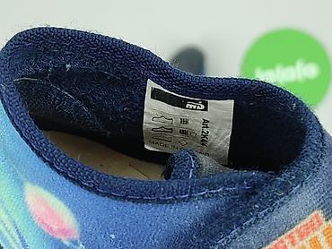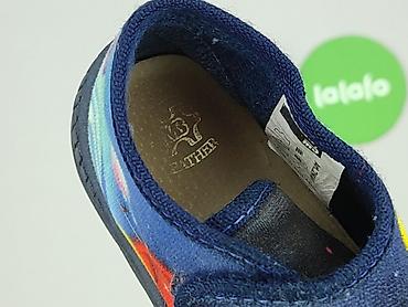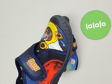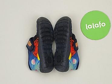 Chłopięce kapcie/tenisówki domowe z motywem wyścigówek - Rozmiar: 23 (widoczny na podeszwie) - Dla: chłopca, niemowlę/dziecko - Kolor: granatowy z niebieskimi i czerwonymi detalami - Zapięcie: rze...