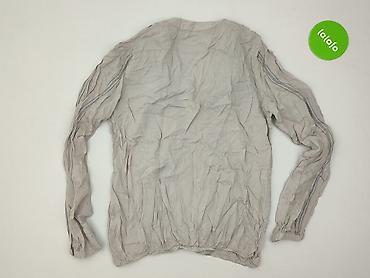 Szara bluzka damska z długim rękawem, CALM & CASUAL, rozmiar L. - Kolor: jasny szary melanż - Fason: luźny, lekko dłuższy tył, okrągły dekolt - Rękaw: długi - Ozdoba: szeroki, czarny pas z koronko...