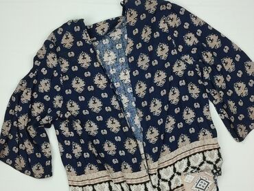 Kimono/kardigan damski Janina – rozmiar S/M - Fason: luźny, otwarty narzutka/kimono bez zapięcia - Rękaw: do łokcia (około 3/4) - Długość: za biodra - Kolor: granatowy - Wzór: jasnoniebieski, rośl...