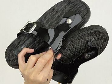 Sandały damskie MSMG – czarne - Model: MSMG (logo na wkładce) - Rozmiar: 38 EU / 7 USA (oznaczenie na podeszwie) - Kolor: czarny z złotymi akcentami - Cholewka: szeroki pasek z dużym, błyszczącym ...