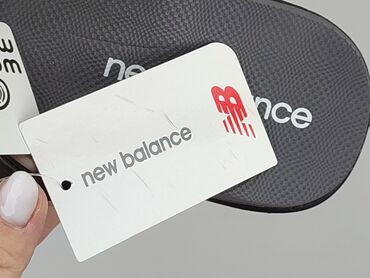 Niebieskie klapki damskie z brązowymi paskami, idealne na ciepłe dni. Podeszwa klapek w błękitnym kolorze, ozdobiona subtelnym wzorem roślinnym, wykonana jest z materiału, który zapewnia komfort no...Klapki japonki damskie New Balance – model Women’s JoJo Thong
