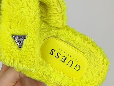 Damskie botki/kapcie ocieplane - Rozmiar: 36 (oznaczenie na podeszwie) - Kolor: karmelowy/camel - Cholewka: zamszowa (imitacja zamszu) - Wnętrze: miękkie, futerkowe ocieplenie na całej długości - ...Klapki damskie GUESS – model z futerkowym wykończeniem
