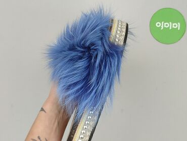 Klapki damskie Baba Jaga z puszystym, niebieskim futerkiem