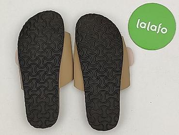 Klapki damskie z ozdobnymi koralikami - Model: wsuwane klapki na płaskiej podeszwie - Rozmiar: 40 (oznaczenie na wkładce i podeszwie) - Kolor: czarny pasek, jasnobeżowa wkładka - Cholewka: szeroki...