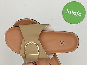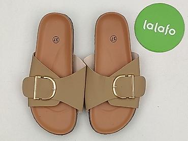 Damskie klapki wsuwane - Rozmiar: 36 (oznaczenie na podeszwie) - Typ: płaskie, wsuwane - Cholewka: szerokie krzyżujące się paski z tworzywa imitującego zamsz w kolorze karmelowym - Wkładka: gładka...Stan: