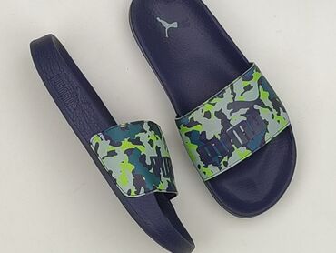 - Kolor: granatowy z paskiem w zielono‑niebieski kamuflaż; logo PUMA na pasku i na wkładce