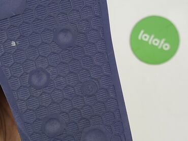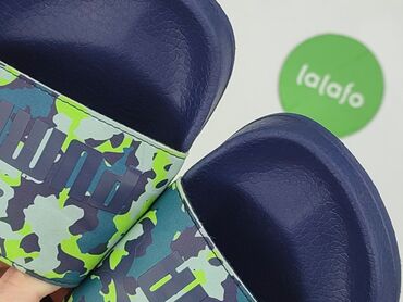 Niebieskie klapki basenowe/slidery - Model: wsuwane, z szerokim paskiem - Kolor: granatowy/niebieski - Rozmiar: 39 (oznaczenie na spodzie) - Materiał: lekka pianka/guma EVA - Wkładka: profilowana,...