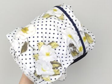 - Wzór: białe tło w granatowe kropki z dużymi kwiatami i liśćmi