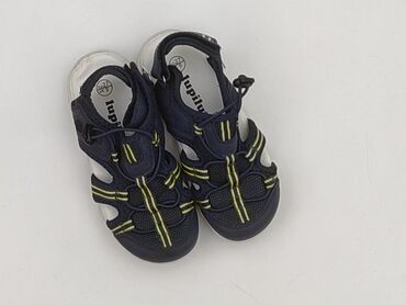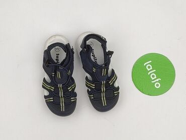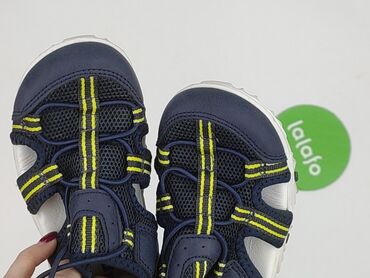 Sandały dziecięce granatowo‑niebieskie z rzepami - Model: letnie sandały z paskami na rzep - Kolor: odcienie niebieskiego/granatu - Zapięcia: potrójne rzepy (na podbiciu, przy palcach i wokół kost...