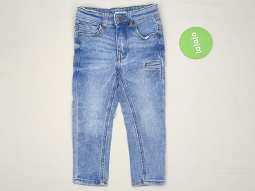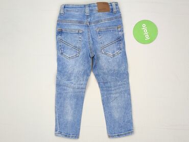 Jeansy dziecięce Reserved - Rozmiar: 146 cm (metka) - Krój: zwężane nogawki, wysoki stan z marszczoną gumką w pasie - Zapięcie: guzik + suwak - Kolor: klasyczny niebieski denim z przetarciami i de...