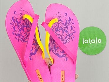 Japonki damskie - Kolor: różowe podeszwy z brzoskwiniowymi paskami - Rozmiar: 36 (oznaczenie na spodzie) - Marka/logo: widoczne „alba” na paskach - Cholewka: miękkie, elastyczne paski typu V - Wkł...