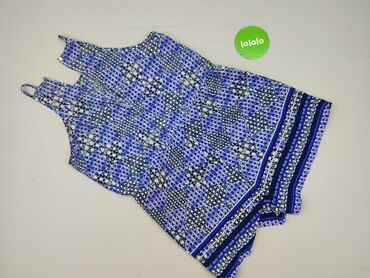 Kombinezon damski bez ramiączek, wzorzysty - Fason: krótki kombinezon (szorty), góra typu bandeau/bez ramiączek - Wzór: mix geometryczny i kwiatowy w odcieniach błękitu, turkusu, granatu i beżu - ...Stan: