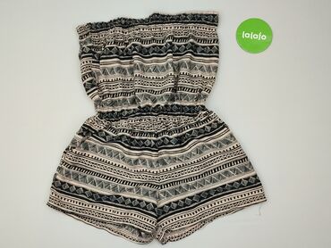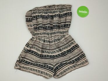 Kombinezon damski H&M Divided - Model: letni kombinezon/ramper z krótkimi nogawkami - Kolor i wzór: czarny w białe, pionowe etno‑pasy i rozetki - Krój: góra typu bardot ze ściągaczem (można nosić ...