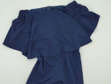 Granatowy kombinezon damski BODYFLIRT - Krój: dopasowany dół (zwężane nogawki) i efektowna, szeroka falbana na górze tworząca dekolt hiszpański (off-shoulder). - Rękawy krótkie, elastyczne w górne...Stan: