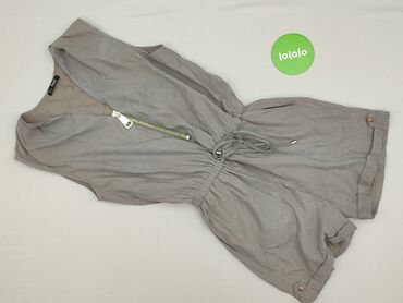 Szary kombinezon damski (bez rękawów) – Yd. Basic, rozmiar M - Fason: dzienny, jednoczęściowy, nogawki krótkie; talia marszczona gumką dla podkreślenia sylwetki - Dekolt: sznurowany na krzyż, meta...