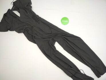 Czarny kombinezon damski Boohoo - Marka: Boohoo (metka widoczna na zdjęciu) - Krój: dopasowany, nogawki zwężane - Góra: ramiączka krzyżowane na plecach, głębsze wycięcia z przodu i na plecach, dek...