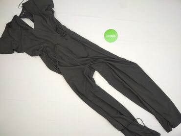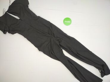 Czarny kombinezon damski H&M Divided - Rozmiar z metki: EUR 38 (US/CA/MX 8, CN 165/72A) - Fason: bez rękawów, długie nogawki - Dekolt z transparentnymi, poziomymi wstawkami z przodu; na plecach ef...