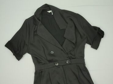 Kombinezon damski H&M - Kolor: czarny - Fason: długi kombinezon z długim rękawem - Dekolt: kopertowy, w kształcie V - Talia: elastyczna gumka podkreślająca sylwetkę - Nogawki: zwężane ku dołowi - ...Stan: