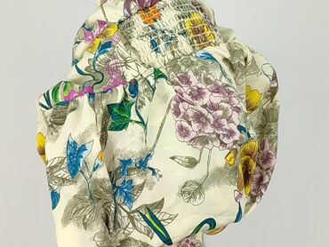 Ten kombinezon damski H&M Divided w rozmiarze EU 36 ma biały kolor i wzór w niebieskie i szare kwiaty. Wykonany jest w 100% z wiskozy. Charakteryzuje się ramiączkami i falbanką przy dekolcie, co do...