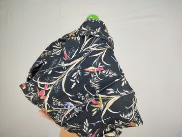- Wzór: ciemne tło z kolorowym, botanicznym printem i ptakami