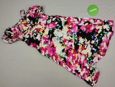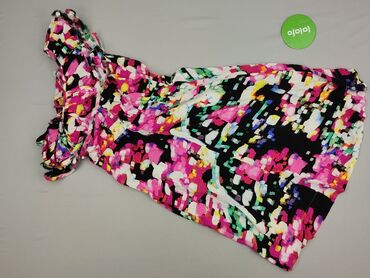 Kombinezon damski z wielokolorowym, abstrakcyjnym wzorem, idealny na ciepłe dni. Charakteryzuje się luźnym krojem i wiązaniem w talii, co pozwala na dopasowanie do sylwetki. Brak rękawów i dekolt t...Stan: