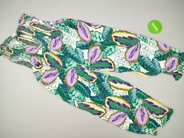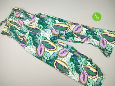 Kombinezon damski w rozmiarze S, o luźnym kroju, z krótkimi nogawkami i szerokimi ramiączkami. Wykonany z lekkiego materiału w kolorze czarnym z tropikalnym wzorem zielonych liści. Posiada wiązanie...
