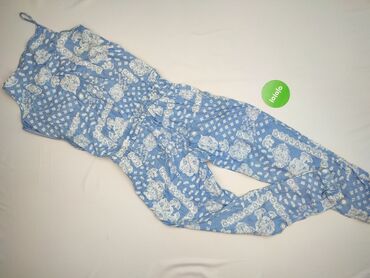 Niebieski kombinezon damski marki Rich & Royal z nadrukiem w białe wzory, wykonany z lekkiego materiału, idealny na lato. Posiada regulowane ramiączka, elastyczną talię ze ściągaczem, zapewniającą dopasowanie i dwie praktyczne kieszenie. Długie nogawki zakończone są ściągaczami. Kombinezon charakteryzuje się luźnym fasonem, który łączy wygodę z modnym wyglądem.