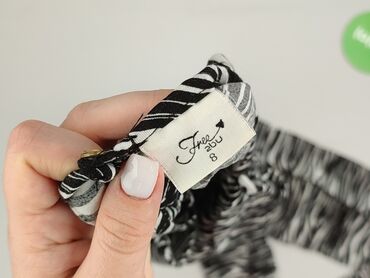 Kombinezon damski Sinsay, rozmiar S. - Krój: bez rękawów, krótkie nogawki, dekolt z wycięciem z tyłu. - Wzór: cienkie pionowe paski czarno-białe. - Talia z elastyczną gumką i paskiem do wiązania, k...