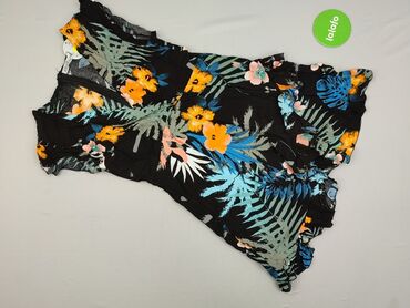 Czarny kombinezon damski marki IRISA, zdobiony barwnym kwiatowym wzorem z motywami liści palmowych. Krótki rękaw i dekolt w kształcie litery V nadają mu lekkości, a całość wykonana w 100% z wiskozy zapewnia komfort noszenia. Idealny na letnie dni lub jako element stylizacji na wakacyjne wyjścia.