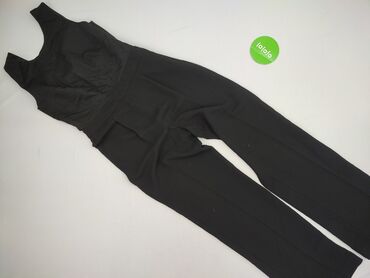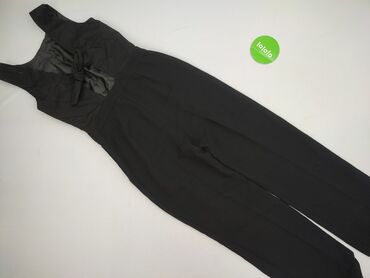 Czarny kombinezon damski bez rękawów - Fason: jednoczęściowy kombinezon z długimi, zwężanymi nogawkami - Góra: prosty dekolt, ramiączka/szerokie naramienniki - Talia: wszyty pasek do przewiązania ...Stan: