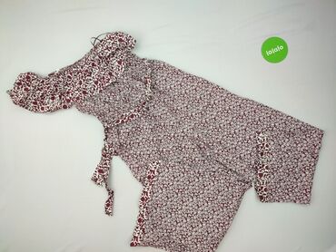Kombinezon damski marki Next, charakteryzujący się eleganckim kwiatowym wzorem w odcieniach zieleni, fioletu i różu na białym tle. Dekolt w kształcie litery V ozdobiony jest delikatną koronką, a ci...