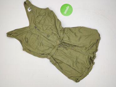Kombinezon damski bez rękawów - Kolor: khaki/oliwkowy - Rozmiar z metki: M - Fason: krótkie nogawki (szorty), luźny krój - Dekolt: V z ozdobnym zamkiem błyskawicznym z przodu (możliwość regulacji ...