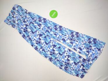 Spodnie damskie w kolorze jasnoniebieskim z multikolorowym kwiatowym wzorem. Charakteryzują się swobodnym krojem i gumką w pasie z białym sznurkiem, co zapewnia wygodę noszenia i dopasowanie. Kwiat...Stan: