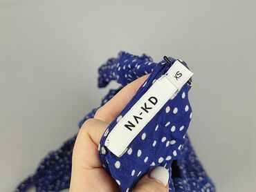 Marka: NA-KD (metka widoczna na zdjęciu). Rozmiar z metki: XS. Kolor: granatowy/biały. W komplecie pasek do wiązania.