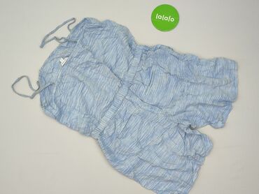 Letni damski kombinezon w paski - Krój: szorty + góra na cienkich ramiączkach, dekolt V - Kolor/pattern: jasnoniebieski w białe pionowe paseczki - Zapięcie: rząd ozdobnych drewnianych guzików z pr...Stan: