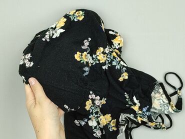 Kombinezon damski H&M Divided - Model: krótki kombinezon bez ramiączek (hiszpanka/strapless) - Wzór: tropikalny, kolorowe liście na czarnym tle (odcienie fioletu, turkusu, żółci i różu) - Talia: e...