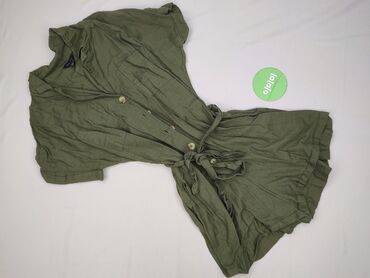 Kombinezon damski New Look - Kolor: khaki/oliwkowy - Fason: bez rękawów, długie nogawki - Dekolt z klapami jak w marynarce, lekko kopertowy - Pasek w talii z metalową okrągłą klamrą do regulacji -...Stan: