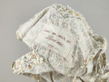 - Materiał: lekka, przewiewna tkanina z nadrukiem kwiatów w pastelowych kolorach (kremowa baza, odcienie błękitu, zieleni i beżu)