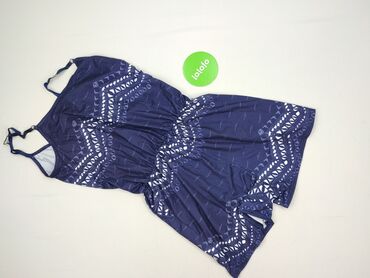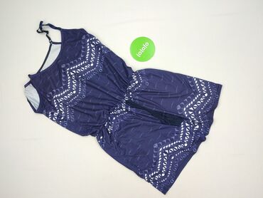Granatowy damski kombinezon Esmara - Fason: jednoczęściowy, na ramiączkach, krótkie nogawki - Zapięcie: rząd dekoracyjnych guzików z przodu - Talia: elastyczna gumka podkreślająca sylwetkę - Mater...