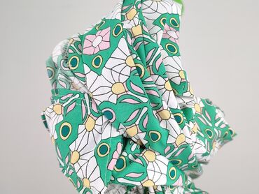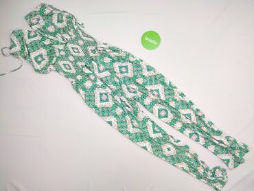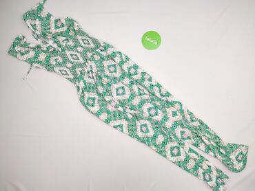 Kombinezon damski w rozmiarze S, o luźnym kroju, z krótkimi nogawkami i szerokimi ramiączkami. Wykonany z lekkiego materiału w kolorze czarnym z tropikalnym wzorem zielonych liści. Posiada wiązanie...