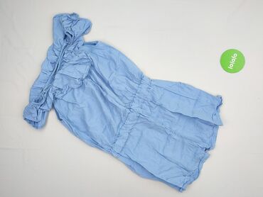 Jasnoniebieski kombinezon damski hiszpanka - Krój: jednoczęściowy kombinezon z krótkimi nogawkami - Dekolt hiszpański, opuszczany na ramiona, z falbaną dookoła - Na ramionach dekoracyjne, szerokie...Stan: