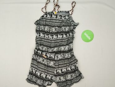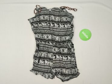 Kombinezon letni damski – wzór tropikalny - Model: jednoczęściowy kombinezon/playsuit - Rozmiar: S (UK S widoczne na metce) - Fason: góra na cienkich, wiązanych ramiączkach; elastyczna talia podkr...