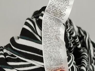 Kombinezon damski F&F - Model: jednoczęściowy kombinezon z krótkim rękawem - Wzór: paski w kolorach czarnym, białym i czerwonym; na górze ułożone pod skosem, w dole pionowe – efekt optycznego wysm...