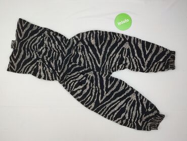 Kombinezon damski w czarno‑białe wzory zebra - Fason: szerokie, proste nogawki 7/8–długości, górą dopasowany; ramiączka szerokie - Dekolt serce z marszczeniem i subtelnym wycięciem na środku biust...Kombinezon damski OKAY, rozmiar 42